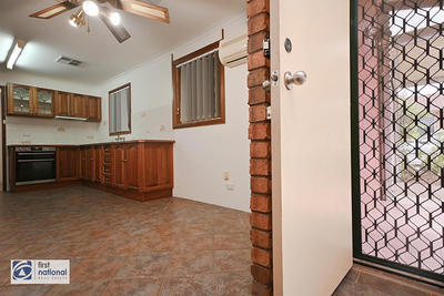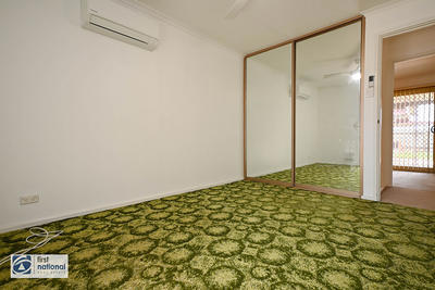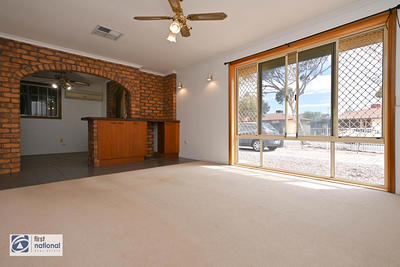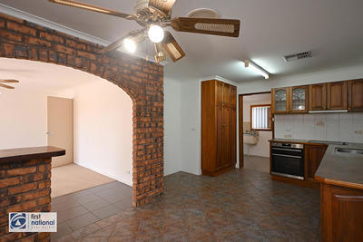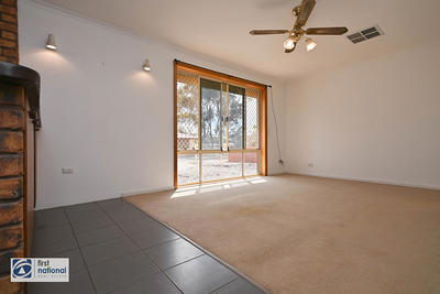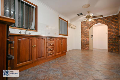 Inside, the home offers a private entry leading to a spacious dining and kitchen area with split system air-conditioner, double fridge recess and plenty of cupboard space, overlooking a generous family-sized living room filled with natural light and complete with built-in cabinetry/bar.